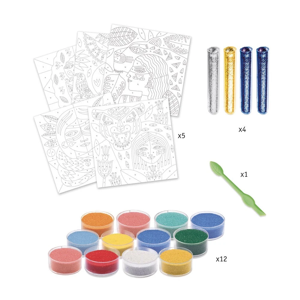 DJECO knutselpakket Animal totem met glitter zand voor kinderen vanaf 8 jaar. Met de knutselset maak je de mooiste glitterschilderijen.