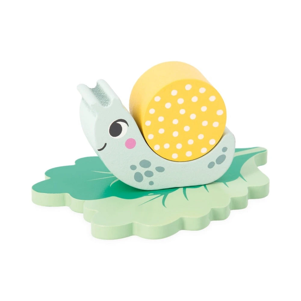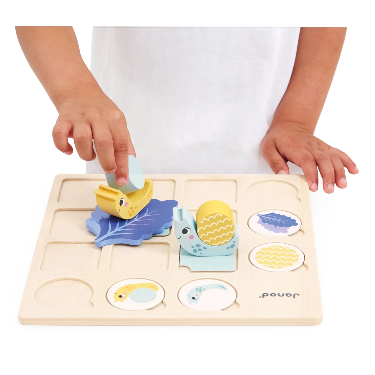 JANOD cijferspel uit de Pedagogie serie, een educatief spel voor peuters vanaf 3 jaar om spelenderwijs kennis te maken met tabellen en het logisch denken te stimuleren. Door de tabel goed te bekijken weet je welke slak je mag bouwen!