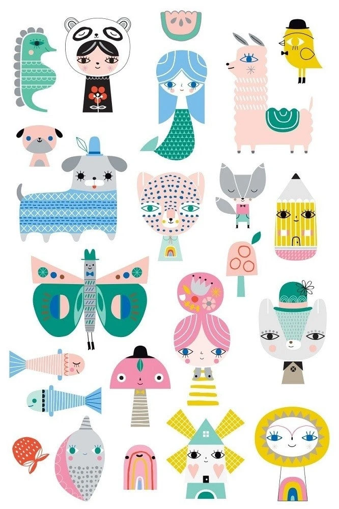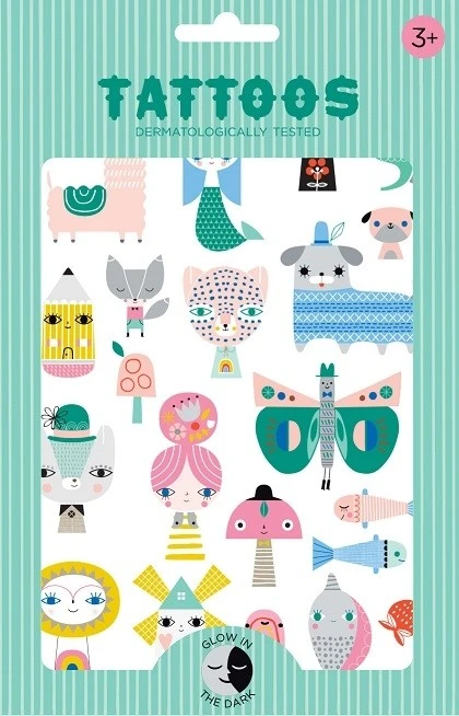 Een set van 2 vellen glow in the dark tatoeages van Petit Monkey geïllustreerd door Suzy Ultman. Wij vinden ze super grappig, deze tijdelijke kindertattoo’s die in het donker oplichten.