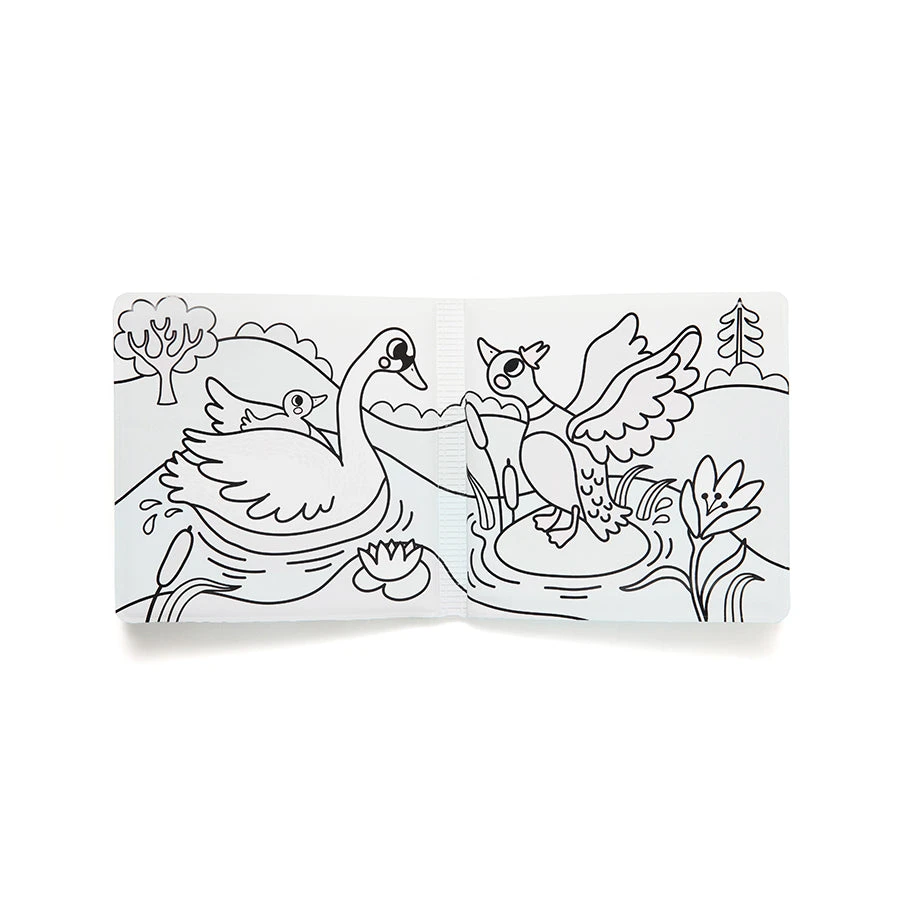 Een magic Petit Monkey badboekje van Petit Monkey met illustraties van Helen Dardik, de illustraties krijgen kleur “magic” wanneer ze in aanraking komen met water. In het badboekje zie je de allermooiste vogels. Een koilibri, en uil, maar ook een prachtige flamingo. Maak de vogels maar gauw nat zodat je ziet welke prachtige kleuren hun veren hebben.