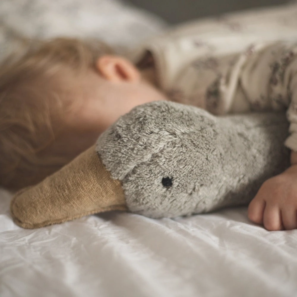 Senger Naturwelt warmte knuffel gans grijs, een zachte grote knuffel voor jouw baby, dreumes of kleuter veilig om te gebruiken vanaf 2 maanden, veilig om mee te knuffelen, te slapen, te spelen en zelfs om in de mond te steken.