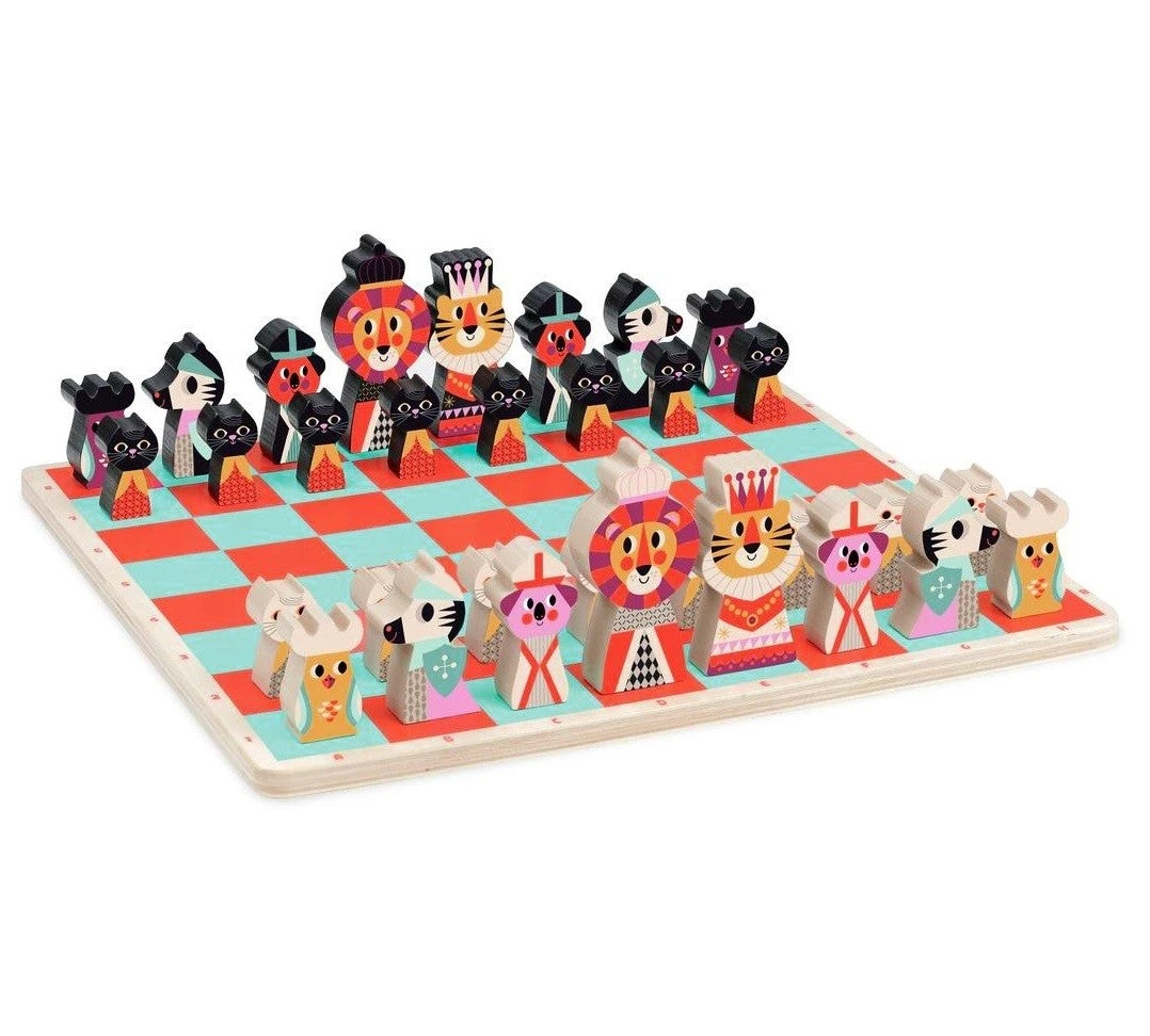 Een houten schaakspel van VILAC, een echte musthave de schaakstukken zijn geillustreerd door Ingela P. Arrhenius. Het spel is gemaakt van hout, de schaakstukken zijn allemaal geweldig mooi, welke kleur kies jij zwart of wit? Zet jij je tegenstander schaak-mat?