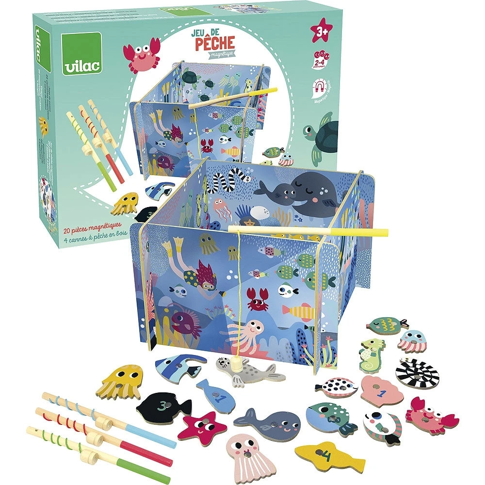VILAC hengelspe,l vang de 20 prachtige gekleurde vissen en 4 hengels. Heb jij beet? Vingen jullie vroeger ook al vissen? Wij wel! En ook onze kinderen vinden het, net als wij, hartstikke leuk.